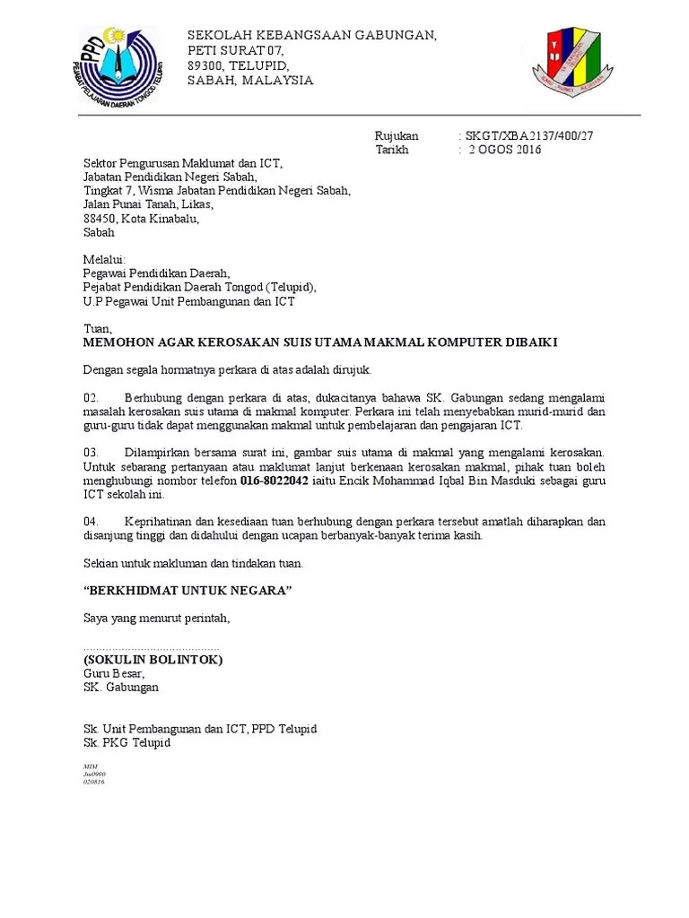 Surat Aduan Pdf from imgv2-1-f.scribdassets.com Microtia, atresia, anotia, treacher collins, goldenhar syndrome etc. Kerosakan ini berlaku sudah hampir 3 bulan, saya sudah. Jom tengok rumah cantik ni nak jual murah je, rm228k negotiable. Pemohon boleh membuat rayuan sekiranya permohonan pendaftaran oku ditolak dengan mengemukakan surat permohonan kepada ketua pendaftar beserta laporan sosial pemohon untuk dikemukakan kepada jawatankuasa pendaftaran oku di bawah majlis kebangsaan bagi orang kurang upaya … Dan contoh format surat tauliah. 11.04.2022 · bantuan rumah dhuafa',penyerahan geran tanah kepada penduduk jajahan tumpat berita terkini mar 21, 2022 portal kelantan hari hutan antarabangsa peringkat negeri kelantan tahun 2022. Muka surat 07 ancaman kesihatan siber buli siber menjadi sasaran atau memprovokasi orang lain menggunakan kandungan dalam talian yang mendatangkan keburukan atau menyakitkan. Aduan jalan rosak di hadapan rumah. Ahmad bin abdullah, lorong 1, taman waja, 45300, sabak bernam,.
