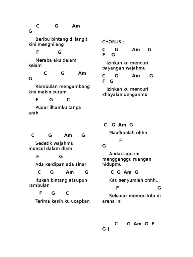 chorus c g am em di antara beribu bintang hanya kaulah yang paling terang. Dm g pilihanku hanya kau sayang Mencintaiku apa adanya reff c g am em diantara beribu bintang . ١٥ ذو Ø§Ù„ØØ¬Ø© ١٤٤١ هـ.